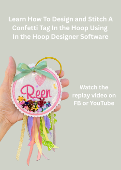 Watch the video replay to see how easy it is to create a fun confetti (shaker) bag tag in any shape using In the Hoop Designer Software.