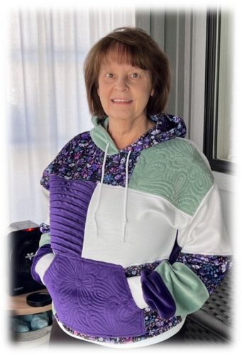 For the hoodie I will be making in the live streams I used Quilting Cuddle in Whispering Blooms Charmed Purple, Juniper and Really Purple