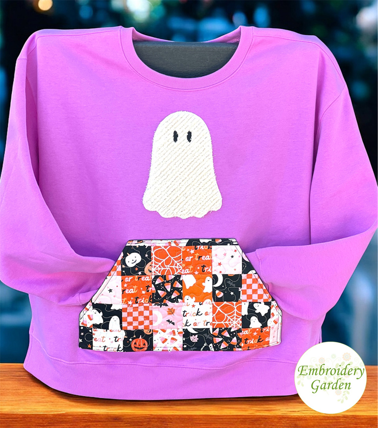 The design includes 3 hoop sizes, making it easy to add to sweatshirts, hoodies, or even totes. It’s quick and super simple to stitch, perfect for beginners or anyone looking for a fast, satisfying project. You could use any quilting file you own to quilt your pocket or stitch the stipple version included.