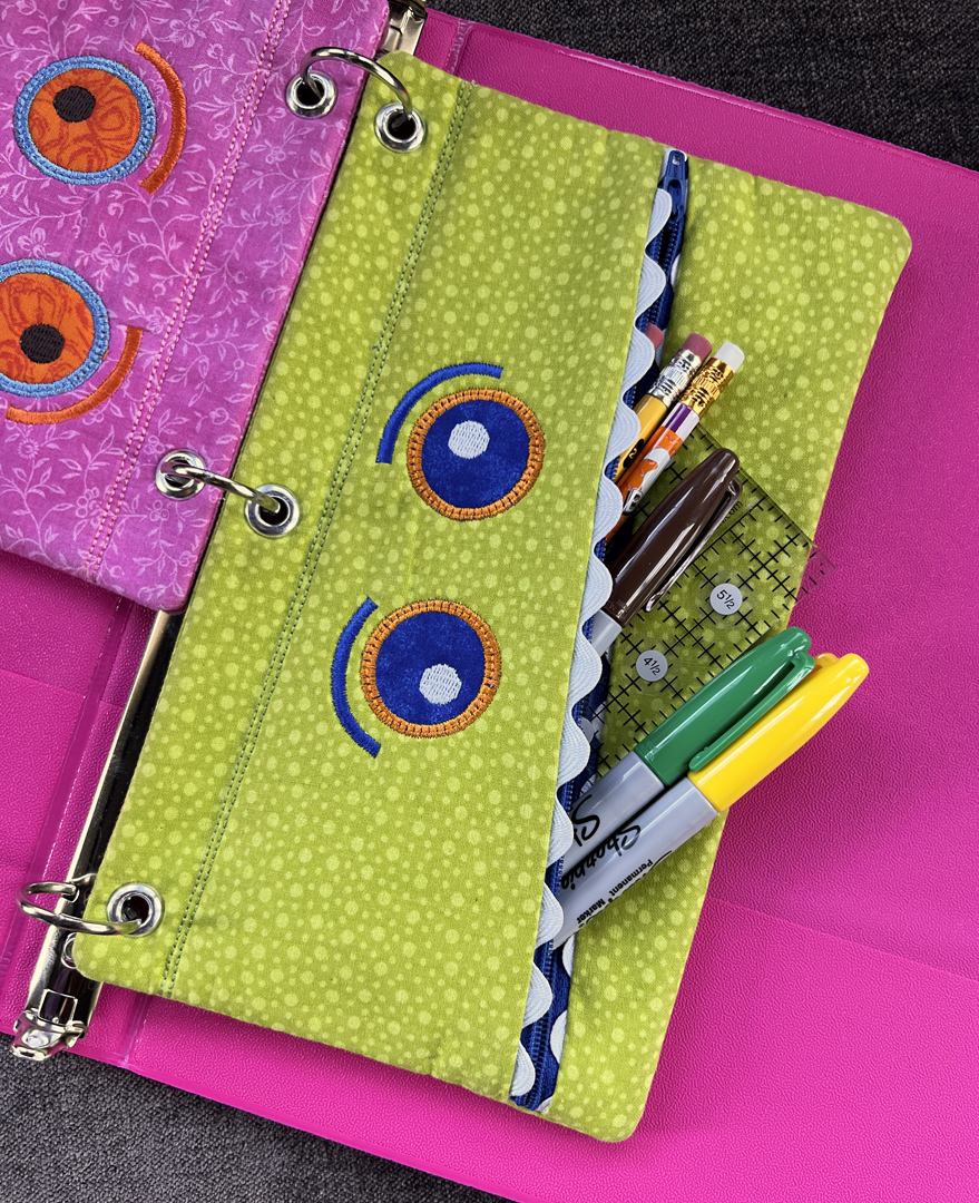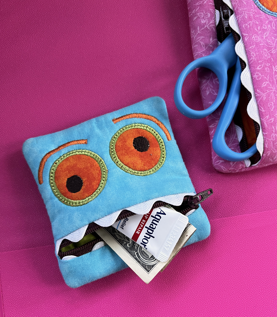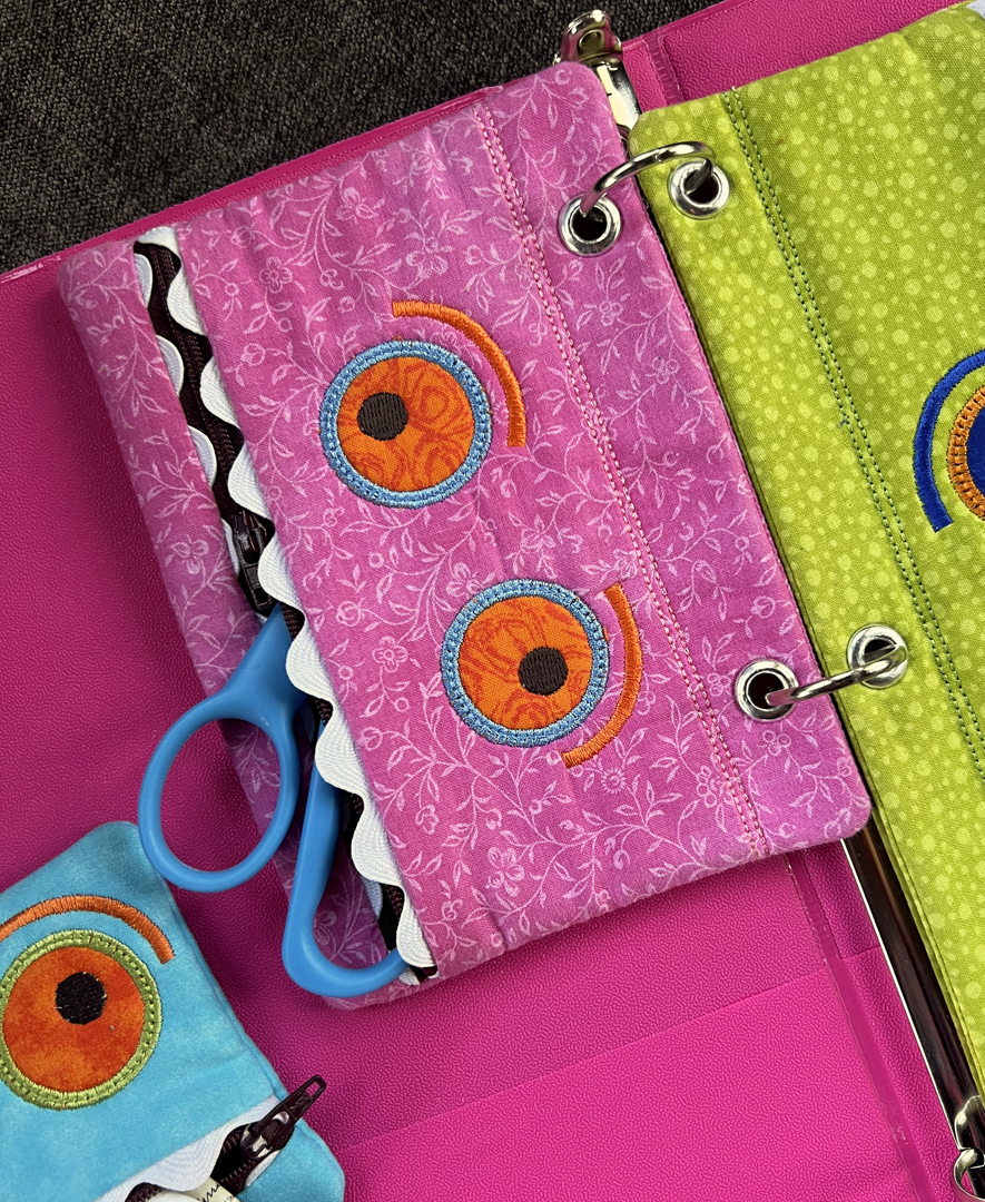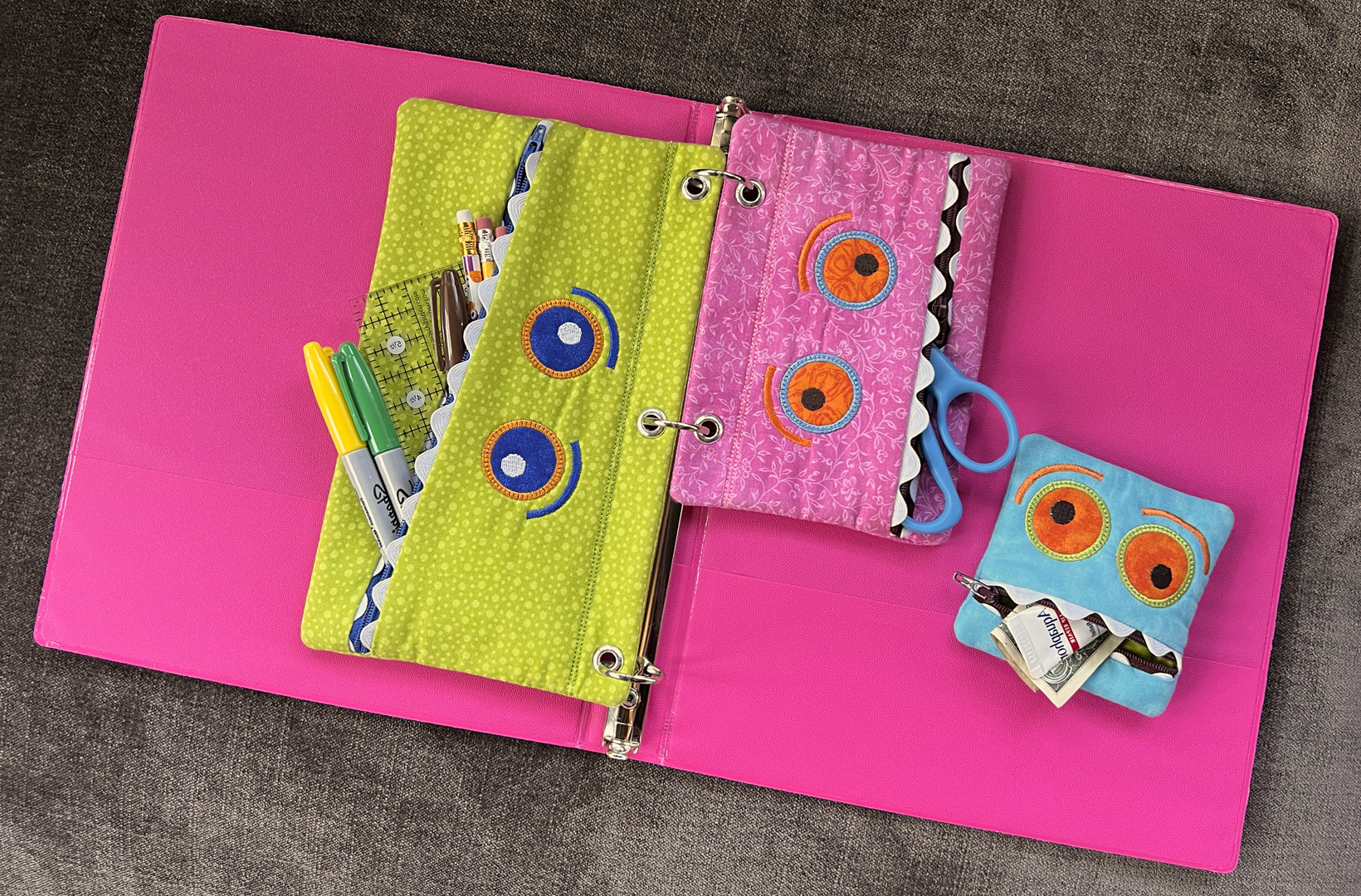 There are 3 fun monster case designs in this set. All of them are stitched completely in the hoop of your embroidery machine.