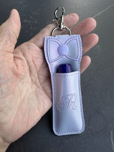 This tutorial shows how to design and stitch a cute Chapstick / lip balm holder that is a keychain with a bow accent.