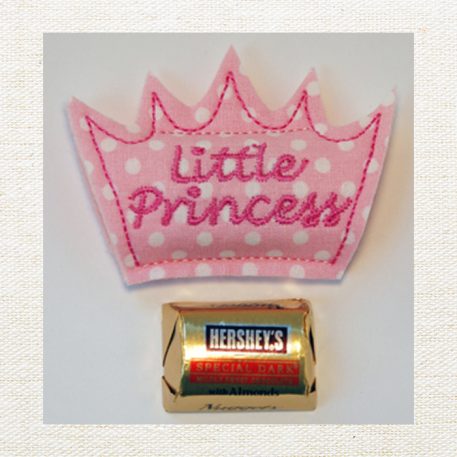 Each design snugly holds a Hershey nugget candy bar.These designs are made in the hoop. The candy bar slips inside the design.