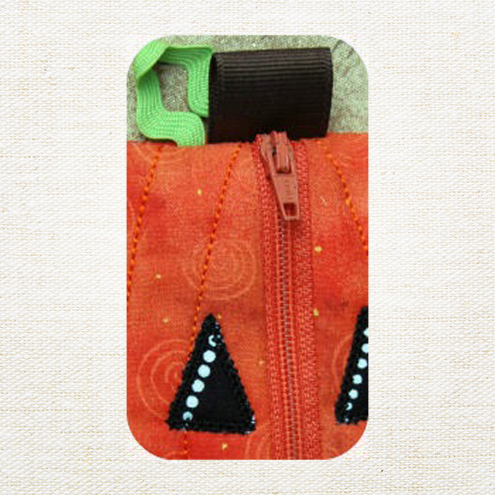 The sweet Jack O’Lantern face stitches quickly with a loose zigzag stitch.
