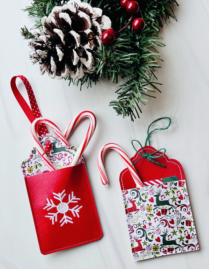 Stitch a quick, cute tag to hold gift cards and other small treats completely in the hoop of your embroidery machine.