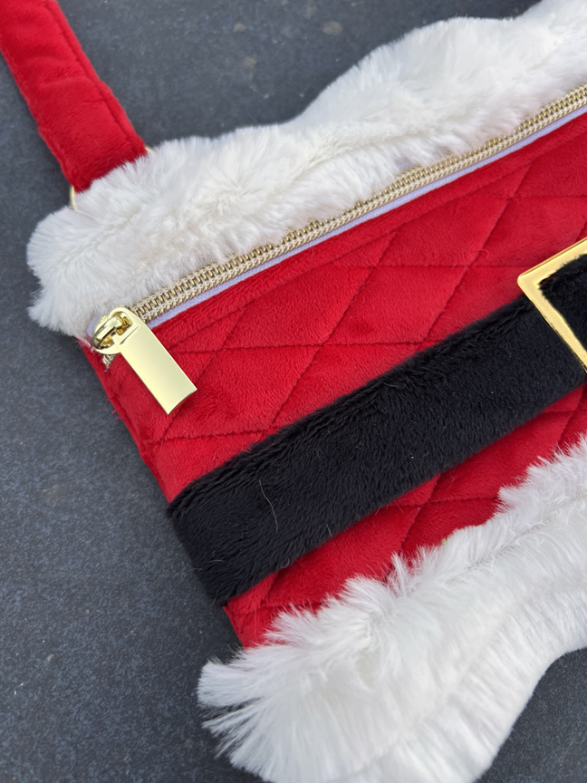 Designed to look like Santa’s iconic suit, this cheerful purse adds the perfect touch of holiday charm to any outfit. Use it as a fun accessory for parties, gift giving or simply to carry your essentials in true Christmas style.